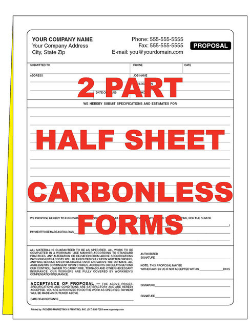 2 Part Half Sheet Custom Carbonless NCR Forms